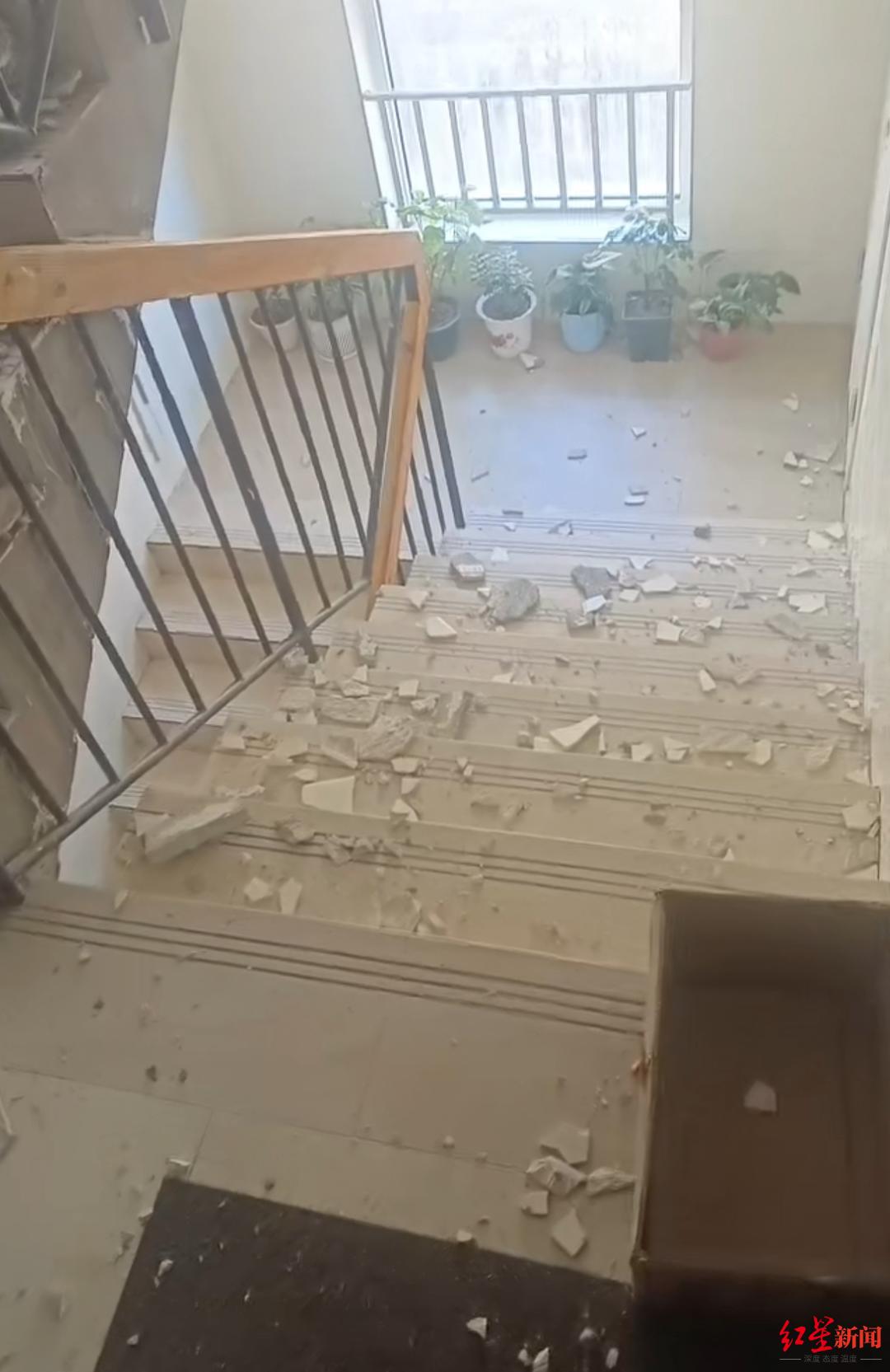 另一位在兴庆区的居民称,其家中楼道墙上所贴的瓷砖因为地震剥落,楼道内全是散落的瓷砖碎块,其开的小卖部中,红酒、饮料等物品被震落至地上。